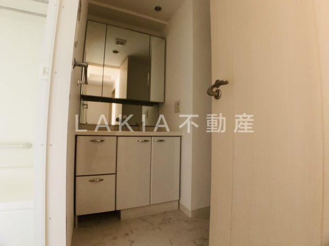 クラウンハイム上町台セントラルラ・カーサの1LDKにある洗面台は、毎日の支度が快適にできるよう使いやすさを重視した設計です。ミラー周りには小物を整理しやすい収納が備わっており、化粧品や日用品をすっきりまとめられます。洗面ボウルは広めで水はねしにくく、朝の身支度から帰宅後の手洗いまでストレスなく使えるのが魅力。明るい照明が顔まわりをしっかり照らし、細かい作業もしやすい環境です。清潔感があり、毎日気持ちよく使える洗面スペースになっています。