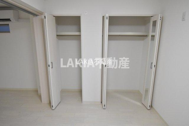 収納スペースは、クローゼットやシューズボックスなど複数備えられており、生活用品や衣類の整理に便利です。クローゼットは洋室内に設置されており、衣類の収納にも十分な広さが確保されています。日用品や季節ごとのアイテムもスッキリ収納できるため、居住空間をより広く使えます。