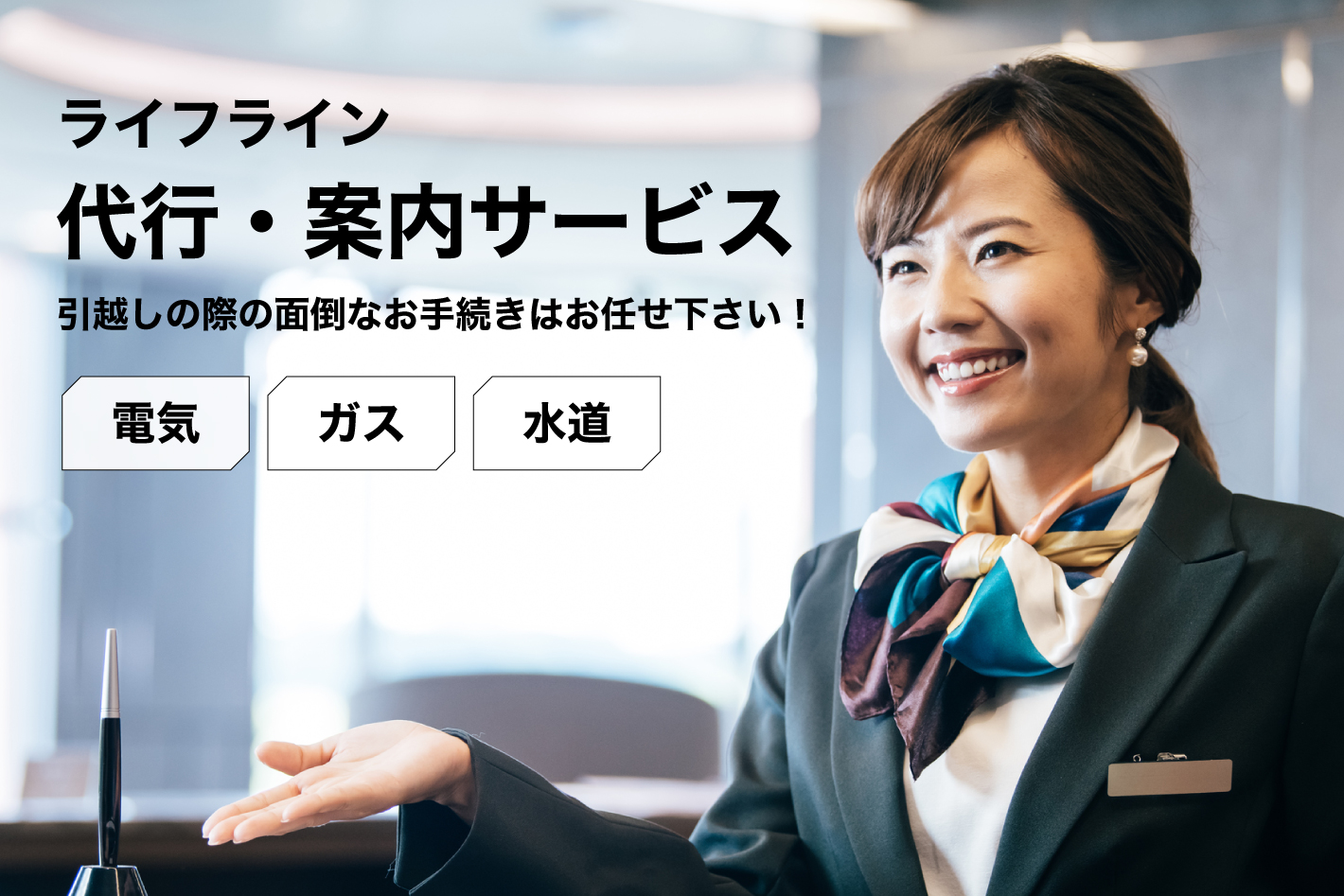 お引越しの時に必ずする、「電気」「ガス」の停止・変更のお手続きの一括代行、「水道」のお手続き先のご案内を無料で行います!ご希望の方には電気・ガス等、お安いプランのご案内もしております。